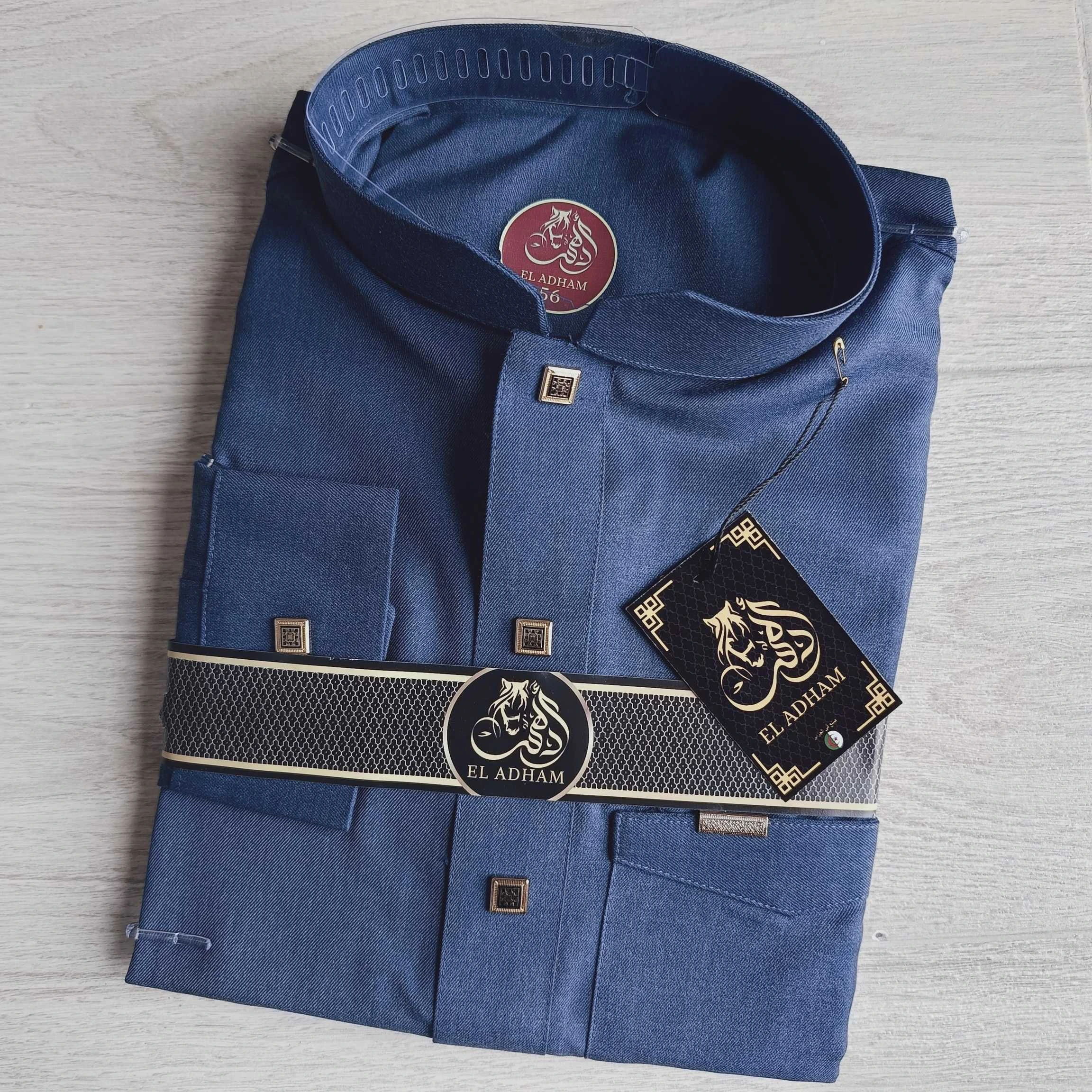 قميص الأدهم للّي يحب اللبسة الثقيلة في الشتاء: قماش شتوي غراماج طالع يعطي دفء ويخلي القميص واقف ومورّق. مناسب للخدمة والخروج، يجي بألوان متنوعة باش تلقى اللون اللي يجي عليك.