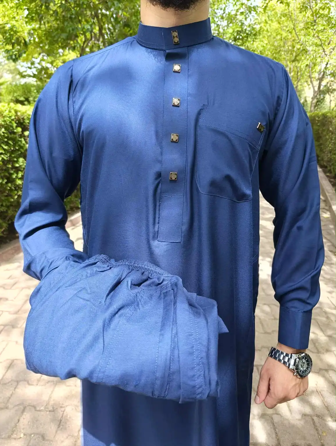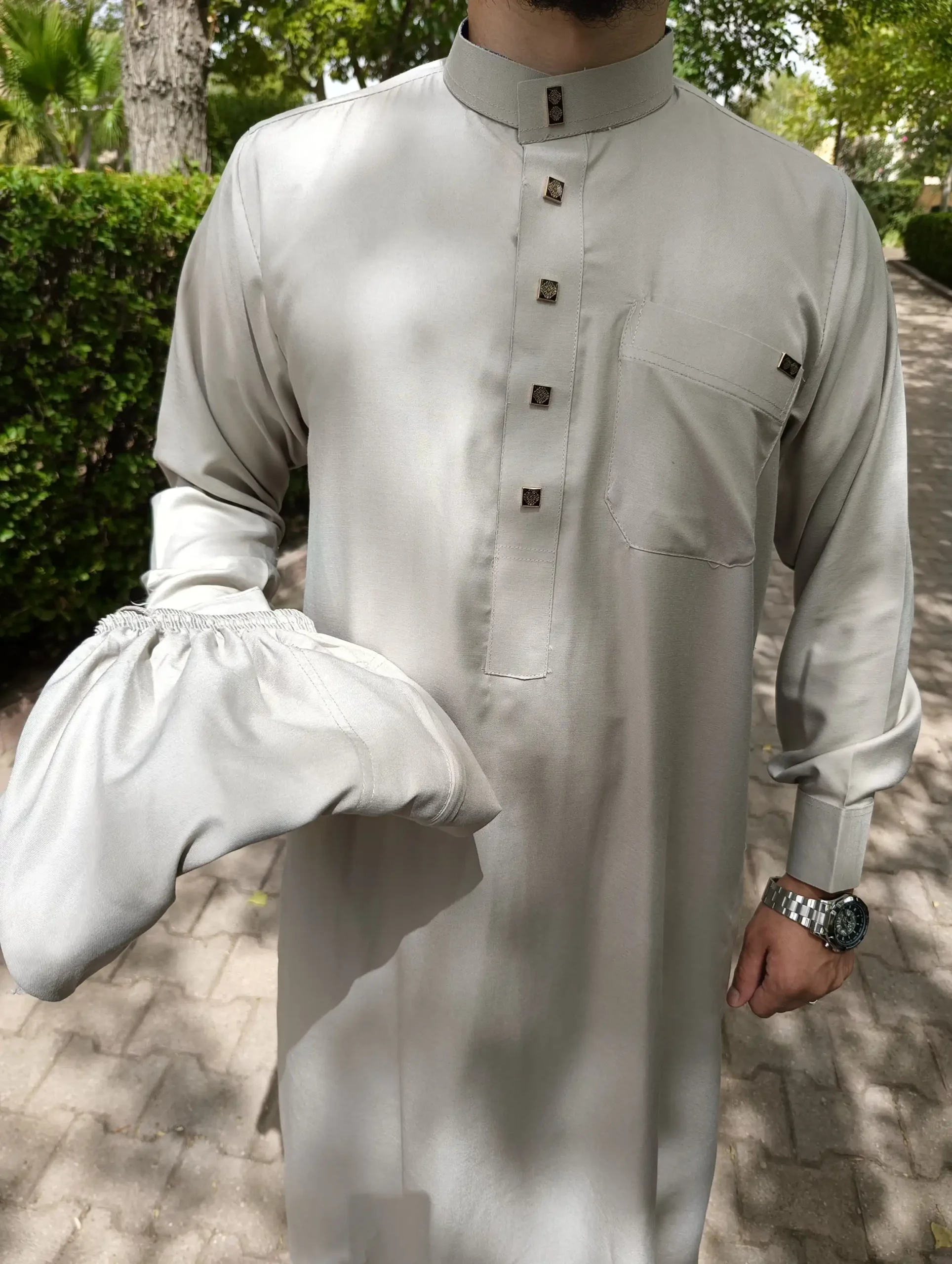 قميص الكاف العصري + سروال متناسق بخامة كتان خفيف مثالية للخريف.