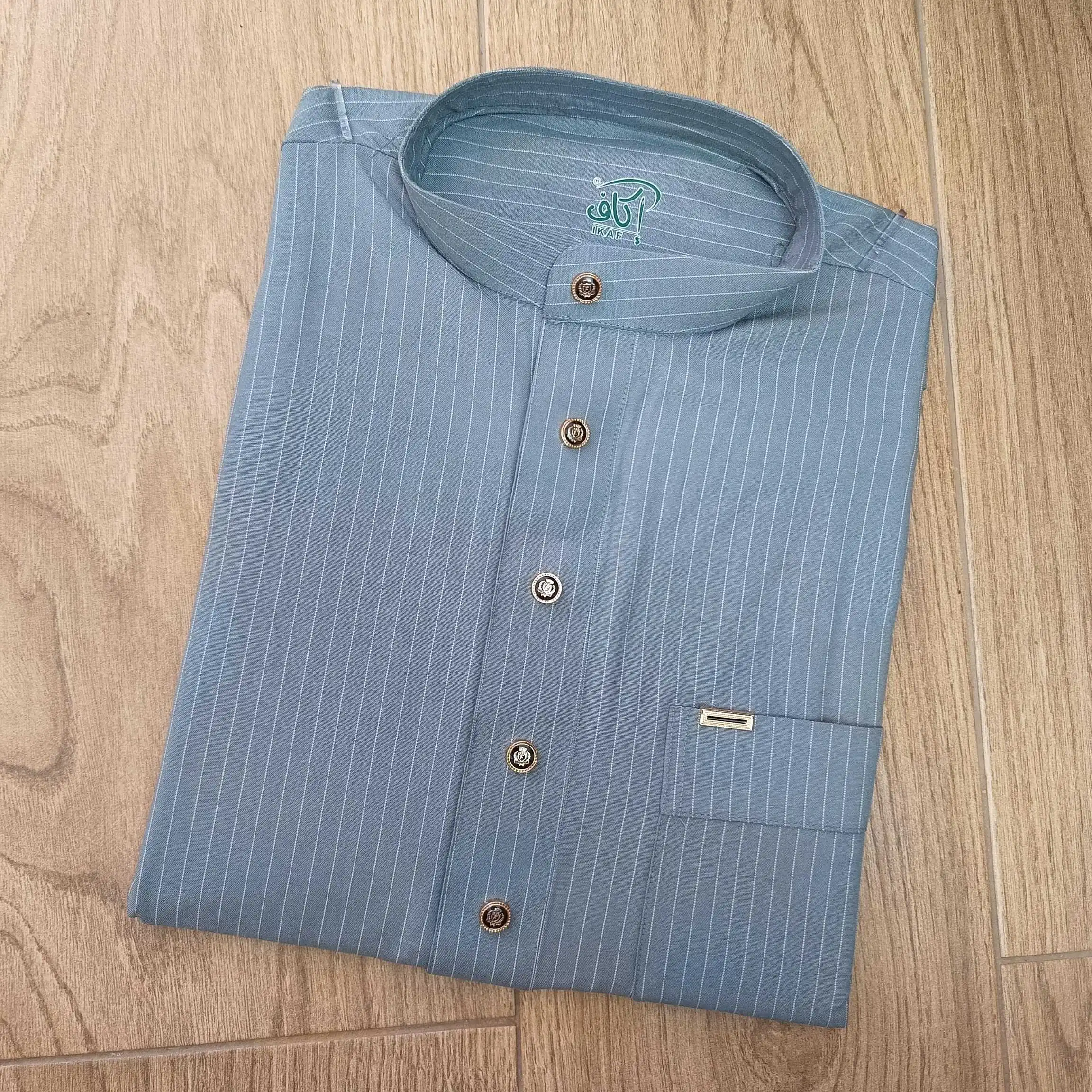 قميص “إيكاف” هو الخيار المثالي لأيام الصيف الحارة ☀️👕. يتميز بخامته الخفيفة والباردة التي تمنحك شعوراً بالراحة والانتعاش طوال اليوم ❄️🧊. تصميمه أنيق وعصري بياقة مغلقة وأزرار راقية، مع خطوط طولية ناعمة تضيف لمسة من الفخامة والبساطة في آنٍ واحد ✨.
